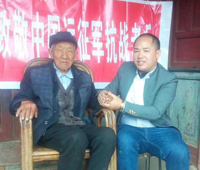 远征军健在老兵汪再祥汪老随黔籍志愿者慰问团一行赴滇西慰问战友(图为汪再祥汪老和李文德李老)