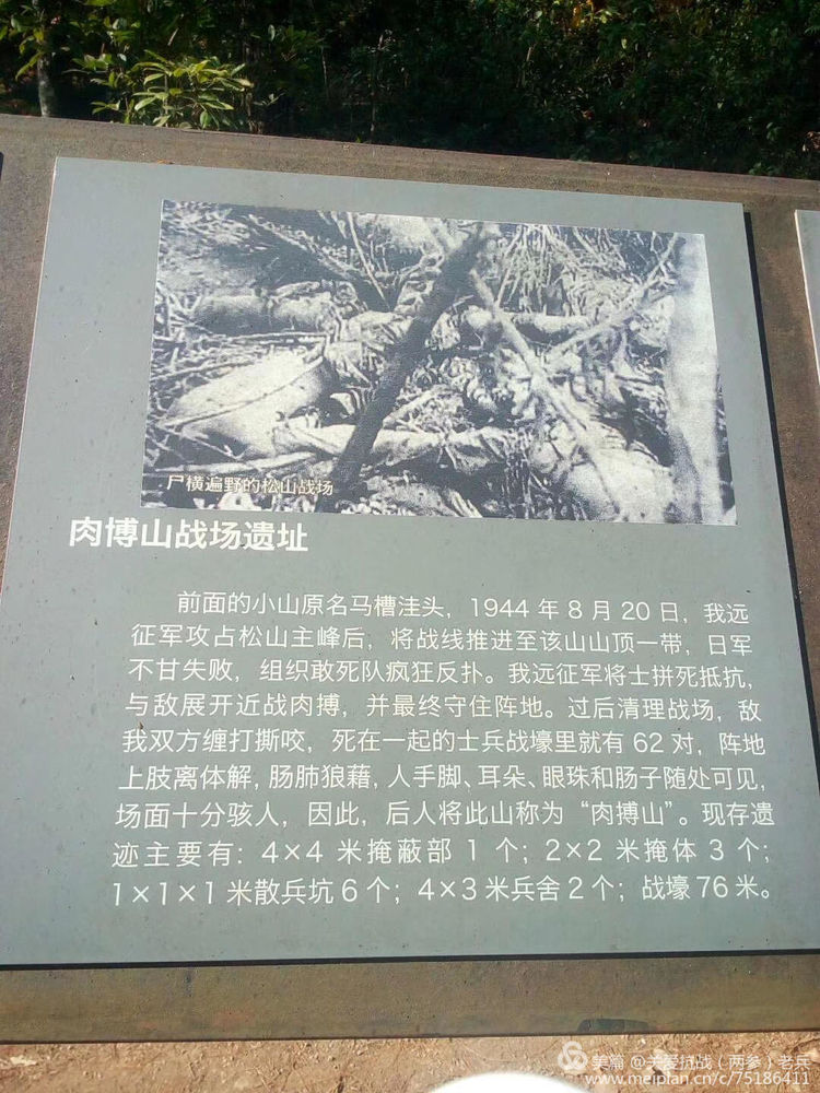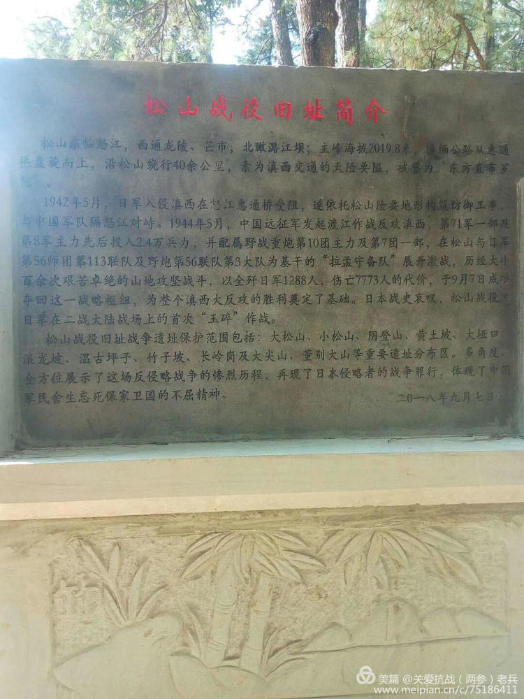 滇缅公路,它曾是古代中国连接东南亚进而由印度沟通西方的商贸要道,然而,20世纪40年代的时候,这条古老的通道却笼罩着一片战争的阴云,此时,峰火遍地的中国已经进入到抗日战争的第4个年头,随着大片国土的沦陷 ,中国政府退缩在西南一隅坚持着抗战,由于失去了所有的工业重镇和沿海口岸,军事物资只能靠西南三省唯一的对外通道滇缅公路从国外输入,滇缅公路也由此成为中国抗战命运攸关的战争大动脉,但是日军是不会允许这条大动脉长期存在的,1941年,太平洋战争爆发,很快入侵东南亚的日军占领了缅甸,他们切断了中国抗战大后方唯一的对外通道----滇缅公路,企图逼迫中国政府放弃军事抵抗,为打破日军的封锁,1942年中国军队组成远征军进入缅甸与日军作战,经过艰苦卓绝的战斗,最终在日军的优势兵力下溃退下来,得胜的日军沿滇缅公路进入中国境内尾追至怒江,中国军队果断炸毁了惠通桥,并在东岸以炮火将日军阻击在西岸,于是,在长达两年多的时间里怒江成为了中国军队的最后防线(2020年是值得庆祝的一年,这一年是中国人民抗日战争胜利75周年!是中国远征军缅北滇西胜利会师75周年!为迎接2020年新年的到来,笔者和几位友人一道特意到“怒江”的发源地----青藏高原,去看看这条当年成为阻挡日寇东进步伐的天险之发源地),在这期间,远征军在盟军美国军方协助下更换了部分美式装备,加强了军队的训练,而日军则在怒江以西构筑工事储备弹药、严防中国军队为恢复滇缅公路而发起的攻击,松山的日军工事就是在这一时期修筑的。松山位于云南省保山市龙陵县,因全山遍布松树而得名,共有二十一余个峰峦构成,主峰海拔两千二百米,紧临怒江西岸、是滇缅公路的必经之地,因而在当时被西方记者称为“东方直布罗陀海峡”。 1944年6月4日,为配合腾冲、龙陵两地的远征军主攻部队,中国远征军第11集团军第71军一部进攻松山外围阵地竹子坡,71军以新编28师为主,另配属了第6军新39师117团发起进攻松山的战役(注;第6军第93师在云南滇南西双版纳一带驻防),松山战役正式打响。71军的这些部队虽然都是新部队,但是当时已经部分换装了美械武器,而且得到了炮兵第10团150榴弹炮、炮兵第7团混合炮兵营以及本军的山炮营的火力支援,还有中美空军的助战,实力已远非昔日可比。两年来由于地面交通被日军徹底阻断,中国军队的作战物资只能靠美国空军开辟的驼峰航线从印度运往云南,但是远远不能满足战胜日军的物资需求,而美国政府为确保太平洋战争的胜利,也迫切需要中国军队投入作战以牵制日军的有生力量,于是一个旨在打通滇缅公路的大反攻作战计划出台了,先前撤退到印度的远征军驻印部队由印度向缅甸北部进攻,驻守怒江东岸的远征军部队渡过怒江沿滇缅公路向缅甸方向进攻,两支部队的会师之日就是滇缅公路打通之时,而国内方向的攻击重点首先选择在日军重兵布防枢纽重镇腾冲和龙陵。 1944年5月11日,远征军第20集团军渡过怒江向腾冲方向发起了右翼攻势,其后不久第11集团军发起了以龙陵为主攻方向的左翼攻势,至此滇西大反攻全面开始了。