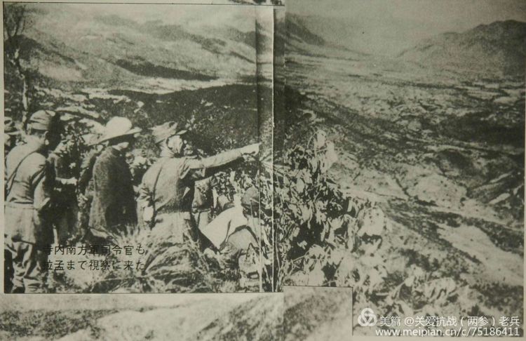 日军占领松山期间,日军南方方面军总司令官寺内寿一(戴白色帽)视察松山日军阵地。