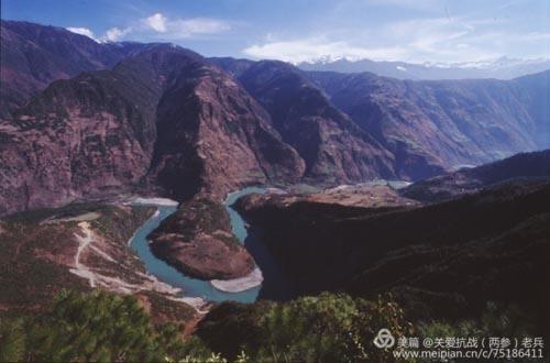 从松山眺望怒江,盘缠在怒江东岸山间的滇缅公路