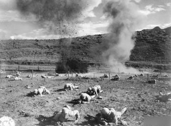 1944年5月20日,中国步兵训练班,美国教官使用8道炸药障碍,训练中国士兵的敌前匍匐前进能力。