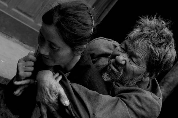 腾冲马站乡的胡定高(86岁,云南腾冲人,原远征军预备2师护路营少尉排长),多年瘫痪在床,孝顺的媳妇唯一能做的就是将他背到院子中晒晒太阳。