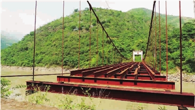 惠通桥位于滇缅公路(中国段)六百公里处的怒江峡谷。73年前,部分中国远征军就是通过这里唱着《满江红》踏入异国战场的。如今,惠通桥早已不再使用,桥面木板早已撤掉,四百米外的新桥代替了它的交通功能,那座桥叫“红旗桥”。惠通桥这座民国时怒江上唯一的桥,则成为抗战景点被世人缅怀纪念。桥东是施甸县陡峭的等子大山头,桥西是巍峨的龙陵县松山,“怒江天堑”保留着它百年前的模样。