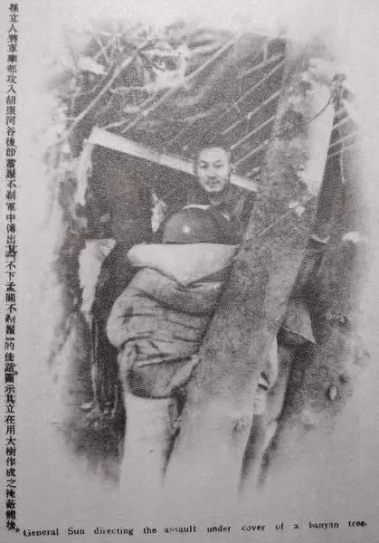 民国卅二年(1943)十二月,孙立人将军率新三十八师主力攻入缅甸胡康河谷血战日本王牌部队──田中新一率领以日本皇室菊花图腾为军徽的皇军第十八师团时,即蓄须不剃,军中传出其「不下孟关不剃须」的佳话。图标见立在用大树作成之掩蔽体后。
