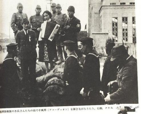 在前线慰问演出的日本歌姬渡边浜子,人气颇高。