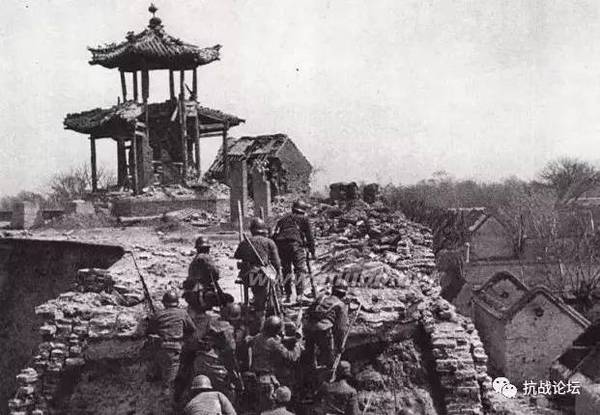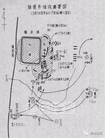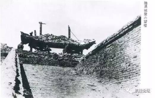 1938年3月16日晨8点,日军第10联队的第1大队已抵达城下。遥望滕县县城高耸,城内有纳粹旗帜飘扬,估计是德国教堂所在。滕县规模宏大,城墙高10米,厚5米,外壕深5米,宽12米,北面最完备,东面次之,南面虽然比较薄弱,但后来日军从这进攻时,却是川军的防御重点。城东北角约150米有一高30米的喇嘛塔,从此处瞭望,腾县内外情况一览无余,对炮兵观察十分有利。