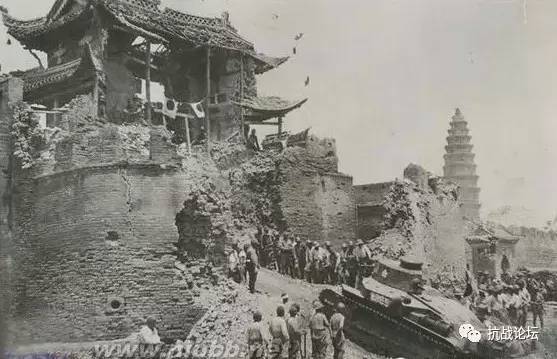 1938年3月17日早6点,日军以五、六十门大炮、二十余架飞机轰炸,城内外除北关因系美国教堂外,一时硝烟弥漫,墙倒屋塌,街上都被倒塌的建筑物堆成一个个小山丘,原来的石板街道被炸成一个个深坑,全城一片火海,遍地都是焦土。两小时后,日军开始进攻东关,十余辆坦克从东寨墙的塌口冲过,后边紧跟着一排排的日兵。我守军虽英勇堵击,用集束手榴弹击毁两辆坦克,终因敌我双方兵力悬殊,我守军死伤殆尽而又无法补充,被日军冲上城角。我守城部队先扔手榴弹,后举起大刀,跃入敌群猛砍,将爬上城墙的日兵全部消灭,我军一个连仅存14人,以血的代价夺回了阵地。