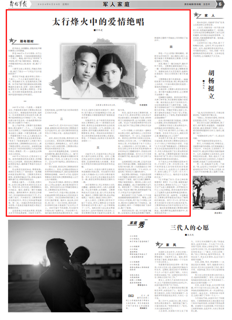 但踟蹰仅是瞬间。黄君珏伸手帮丈夫抻了抻军装,然后握拳在他胸口轻轻一锤。就在抵达沁县计刀岩村的当天,分社给他俩发放了八路军军服。当晚,妻子在昏暗的油灯下为王默磬剪裁稍稍肥大的军装。待缝好军裤让他穿上后,妻子意味深长地说了句话:“穿上军装,就意味着真正上了前线,更意味着随时会面临牺牲!”