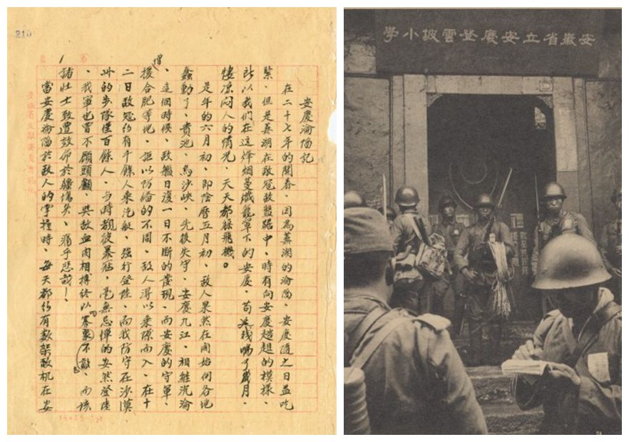 左图:安徽沦陷记手稿 右图:日军侵占安庆