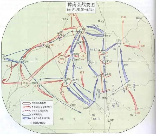 1941年1月下旬,日军十一军三个师团及配属部队兵分三路,从信阳东西两线向北进犯。