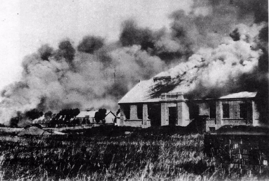 日军侵占沈阳城后,耀武扬威地站在城头,悬挂起日本国旗。