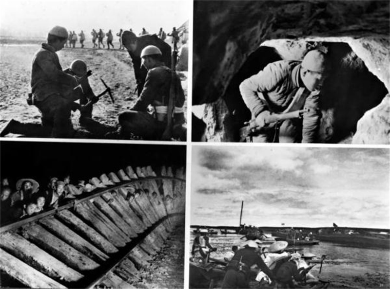 上图左:地雷战;上图右:地道战;下图左:破袭战;下图右:水上游击战。新华社发