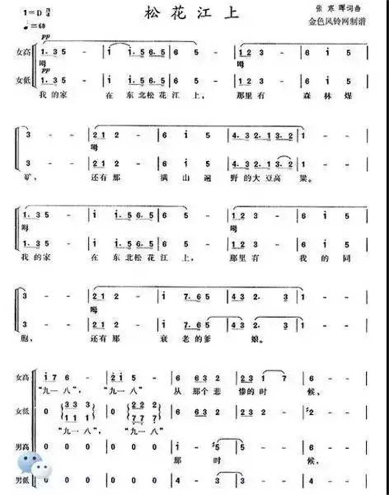 写成《松花江上》的曲调。