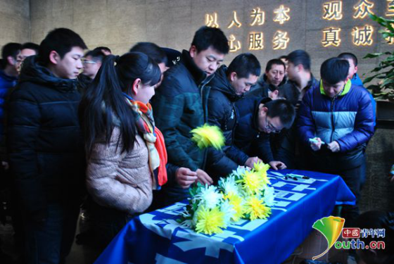 2016年清明节期间,沈阳“九·一八”历史博物馆主办“清明节的铭记——缅怀先烈,珍爱和平”主题教育活动,图为参观民众为抗战先烈献花留言。崔俊国供图
