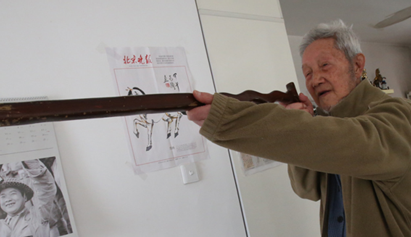 年近百岁的曹子锜怕是已经端不起真正的钢枪了,但在老人心中,枪,还在那里。