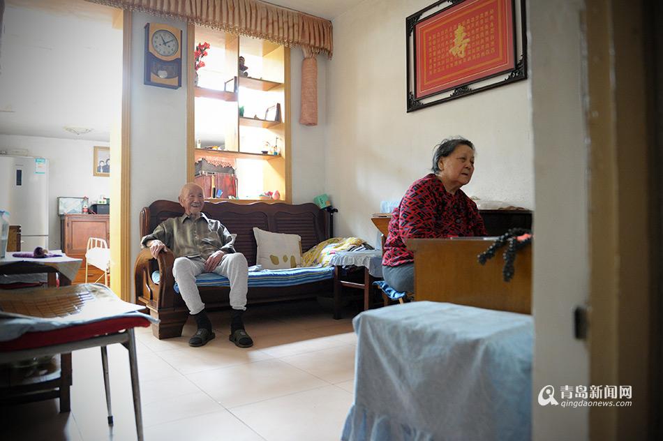王老的老伴儿也年近90,两位老人相濡以沫。图为王健老人和老伴儿在家中看电视(孙志文摄)