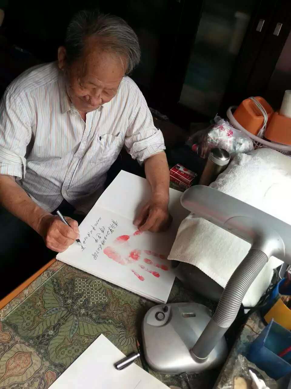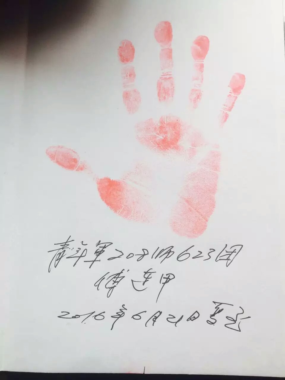 2016年夏至,傅老郑重的在手印采集册上按下自己的手印,并写下部队番号,手印已被南京抗馆永久珍藏,以供后辈铭记和敬仰。