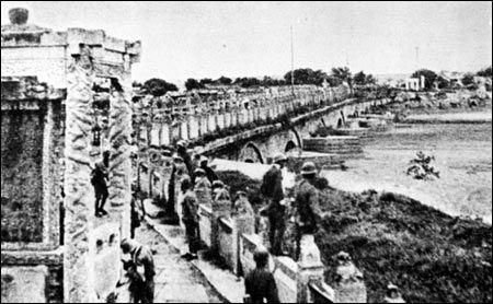 史料记载:1937年7月7日上午,日军到卢沟桥以北地区进行演习。下午,日军第三大队第八中队在中队长清水节郎的带领下,由丰台兵营开到龙王庙,声称进行夜间演习。