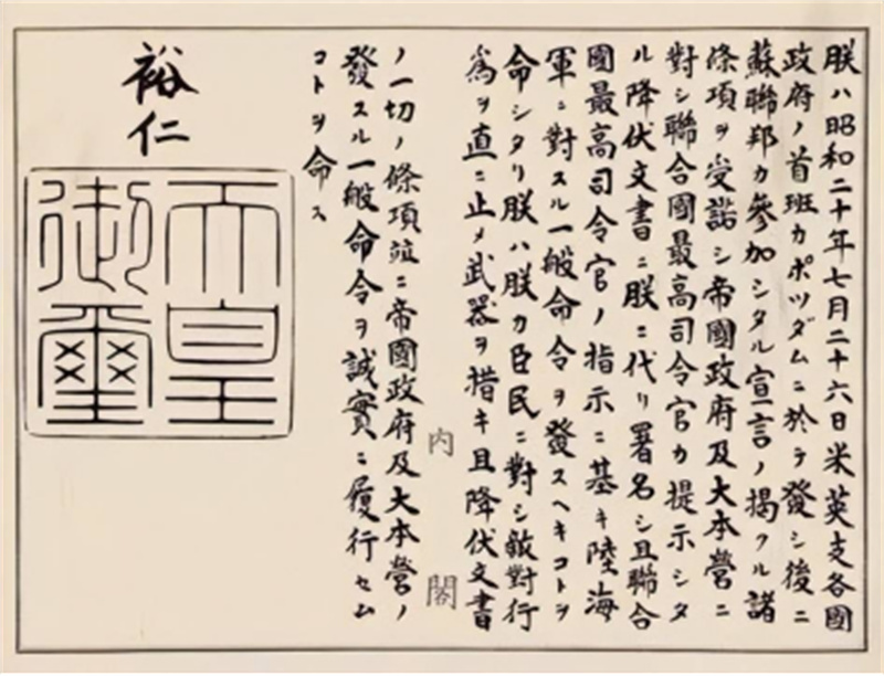 1945年8月14日,日本天皇裕仁签字的投降(终战)诏书局部