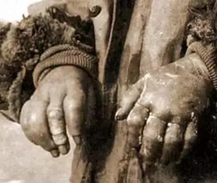2月23日,下午4时,杨靖宇被跟踪上来的100多名敌人包围在一个高地上,他绝不投降,双手开枪射击,打死打伤了20多个敌人。4时30分,杨靖宇胸中三枪,手中一枪,仰面壮烈殉国,年仅35岁。杨靖宇牺牲后,日军发现他的胃里尽是枯草、树皮和棉絮,竟无一粒粮食。图为日军展示杨靖宇将军的遗体。
