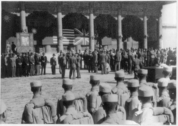 完成,全体向国旗致敬。一九四五年十月十日于故宫太和殿