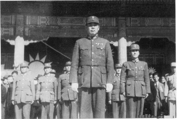 孙连仲(中)、吕文贞(右)及战区幕僚(后)就位