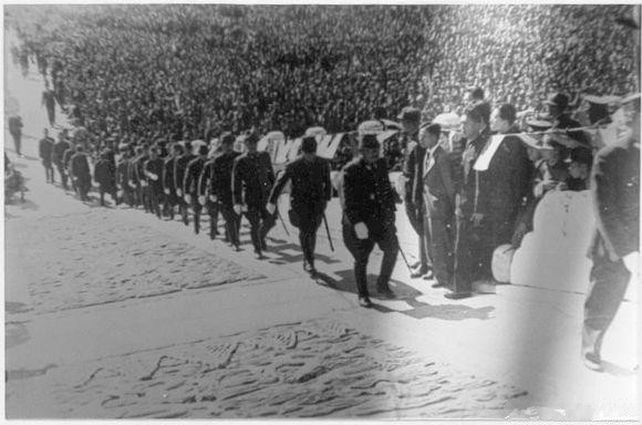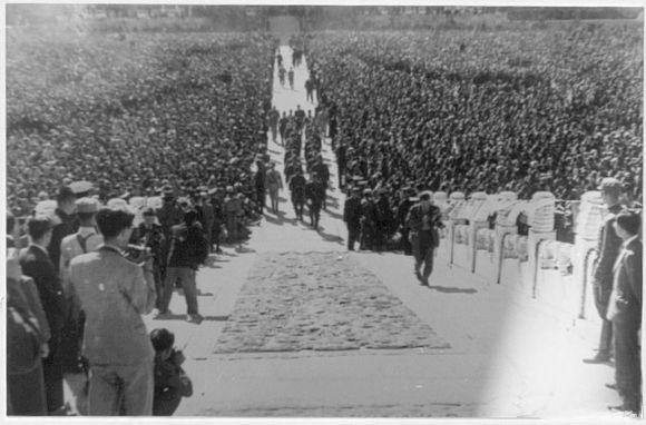 观礼群众激动高呼“中国万岁”、“委员长万岁”、“胜利万岁”,欢声雷动