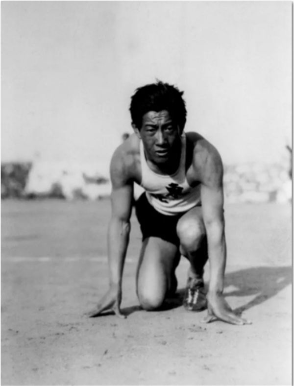 1932年7月30日,第10届奥运会在美国洛杉矶举行。由于20多天的长途跋涉,刘长春的体力和运动能力都下降了很多,他到达洛杉矶的第3天即参加100米预赛,名列小组第5名,未能进入下一轮比赛。在200米比赛中,获小组第4名,也未能进入复赛。这次参赛虽无成绩可言,但向世界宣告了中国奥林匹克运动的存在,改写了中国没有参加世界体育大赛的历史,打开了中国进入奥林匹克运动的大门。特别是刘长春独闯奥运,挫败了日本侵略者欲把伪“满洲国”塞进奥运会的企图,其身上体现出的民族气节更令人敬佩。图为刘长春在洛杉矶奥运赛场。