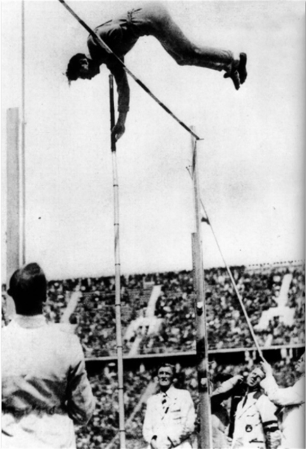 中国撑竿跳高名将符保卢。就读于暨南大学外文系的“中国撑杆跳大王”符保卢不但是中国奥运史上第一个取得的复赛资格的运动员,还出演过多部电影,其成名作是《海葬》。抗日战争全面爆发后,符保卢毅然参加中国空军,不幸在之后的空战中牺牲。有《撑杆跳高秘诀》一文留世。