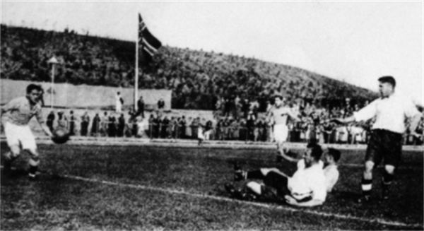 在柏林奥运会上,中国足球队首次参赛,即逢劲旅英国队,最后以0:2遭到淘汰,令人惋惜。但虽败犹荣,他们在比赛中表现出来的技术水平和顽强意志获得一致好评。德国、奥地利、瑞士、荷兰、法国、英国等国家相继发来电报,邀请中国足球队进行访问比赛。奥运会尚未闭幕,中国足球队即赴这些国家进行了9场访问比赛。中国队的表现令这些国家大为惊讶。