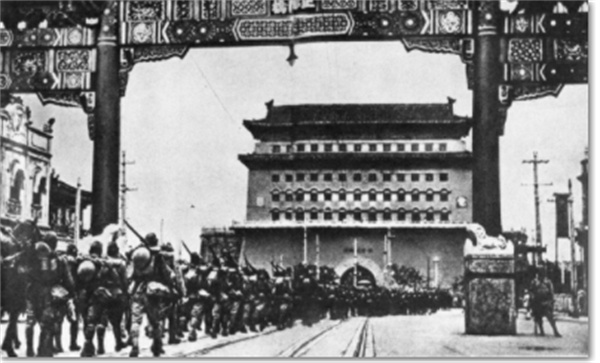 日本帝国主义在侵略中国的同时,东京积极申办第12届奥运会,中国坚决抵制。1938年3月,国际奥委会决定将第12届奥运会改在芬兰赫尔辛基举行。图为日军侵占北平。